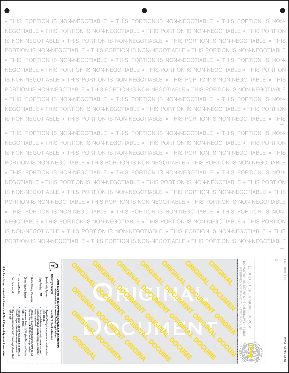 These equal perforation checks have perforations at 3.66" and 7.33" to fold into a perfect "Z". These checks offer the following security features