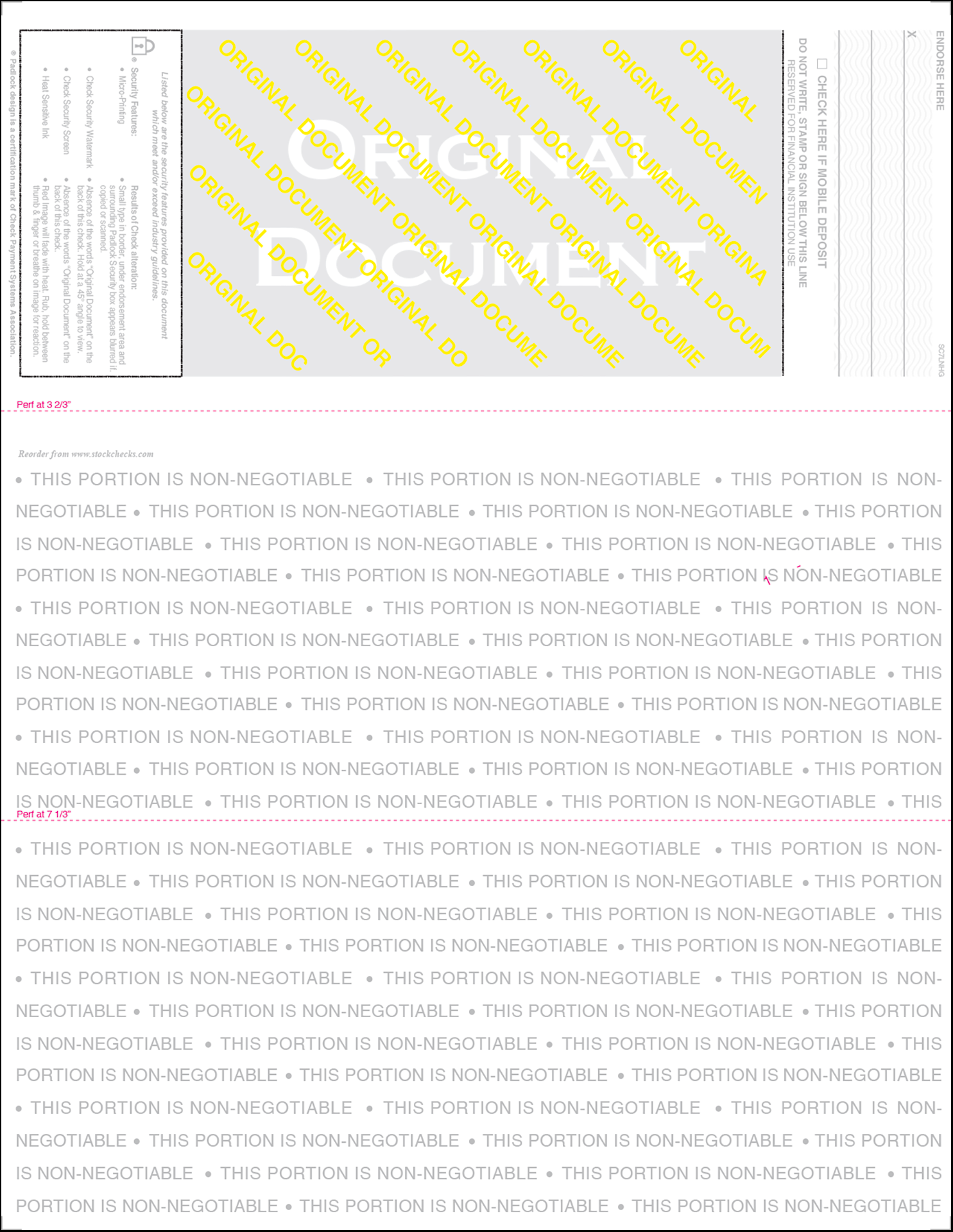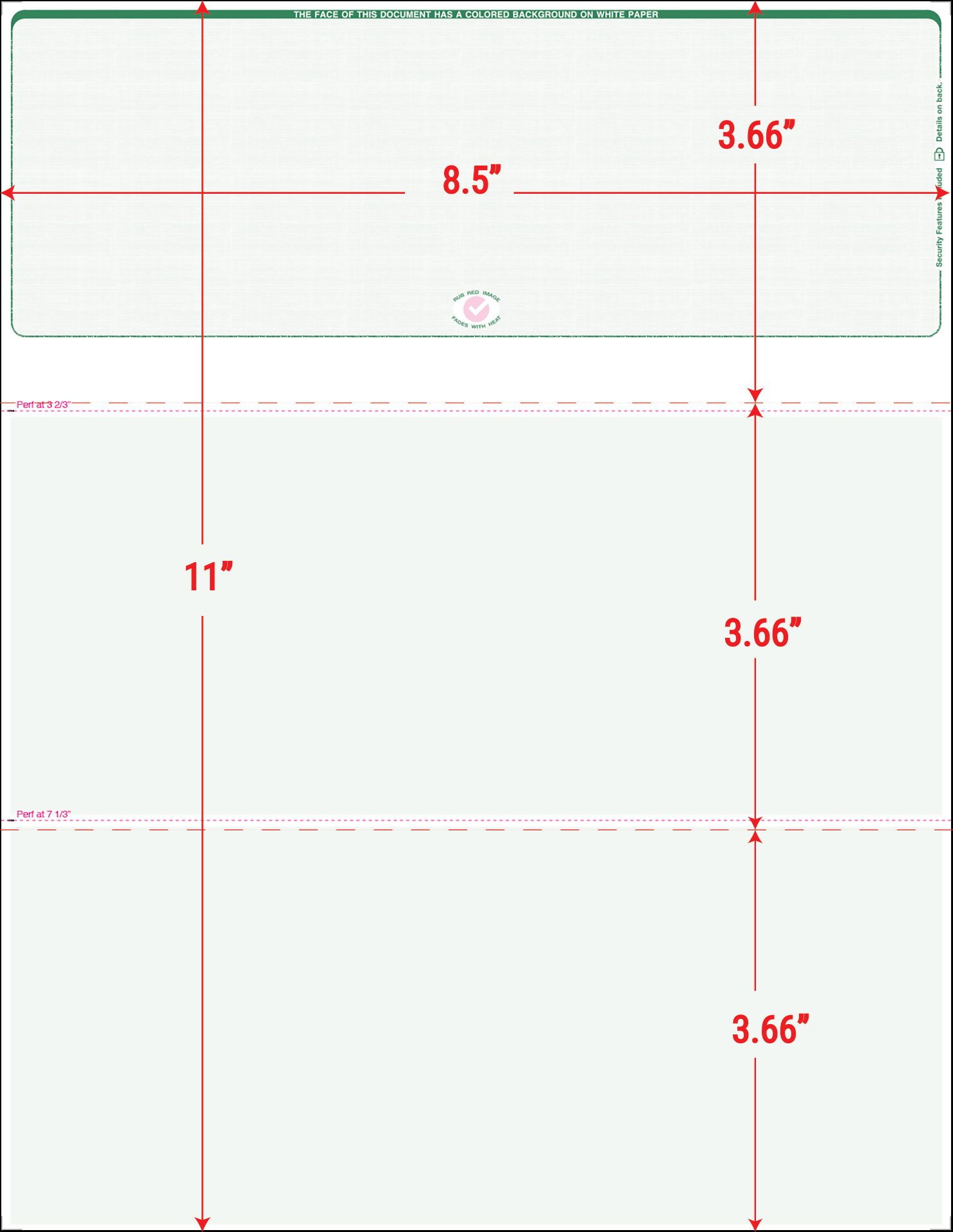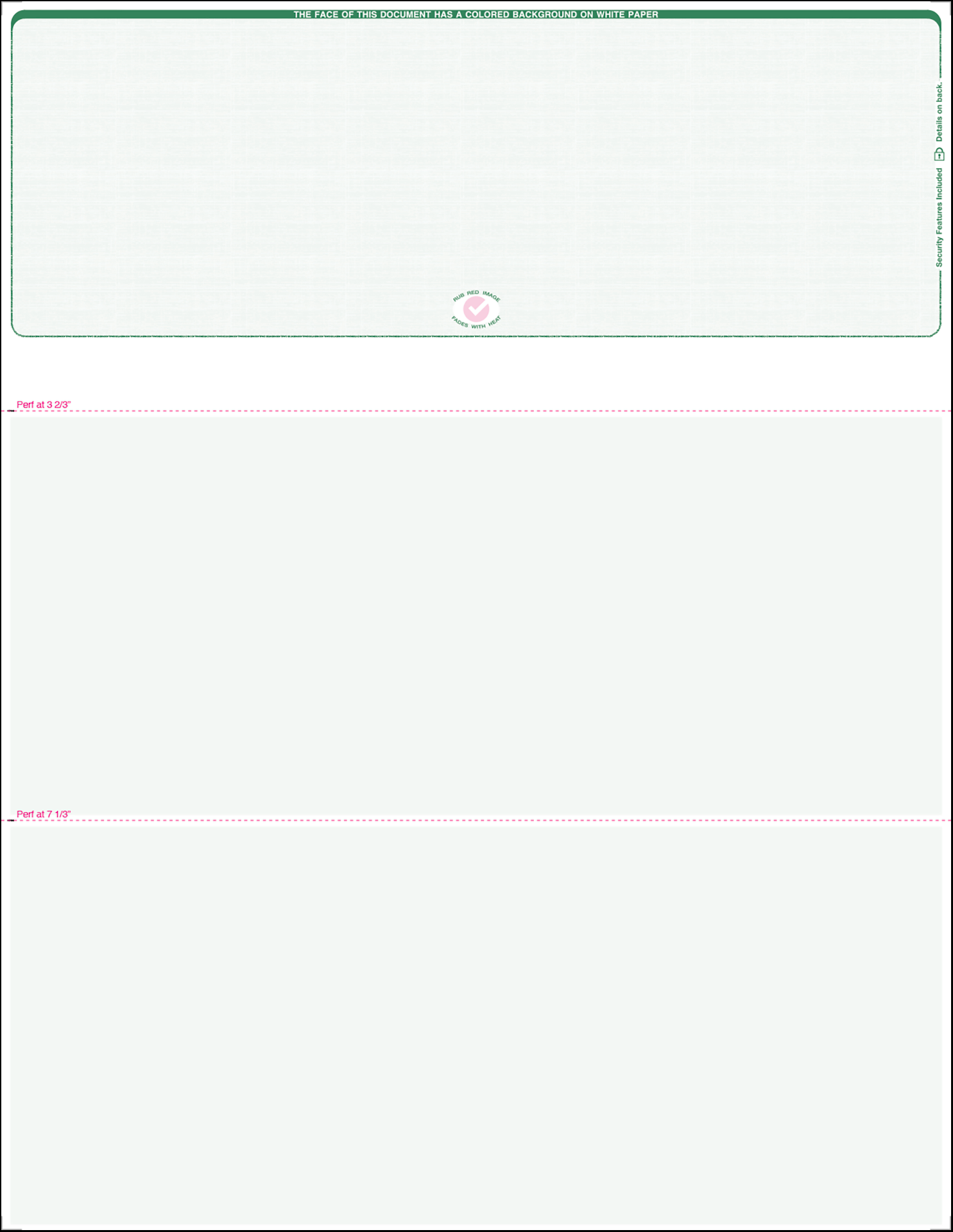 GREEN Linen Top Position EQUAL PERFORATIONS Blank Laser Check