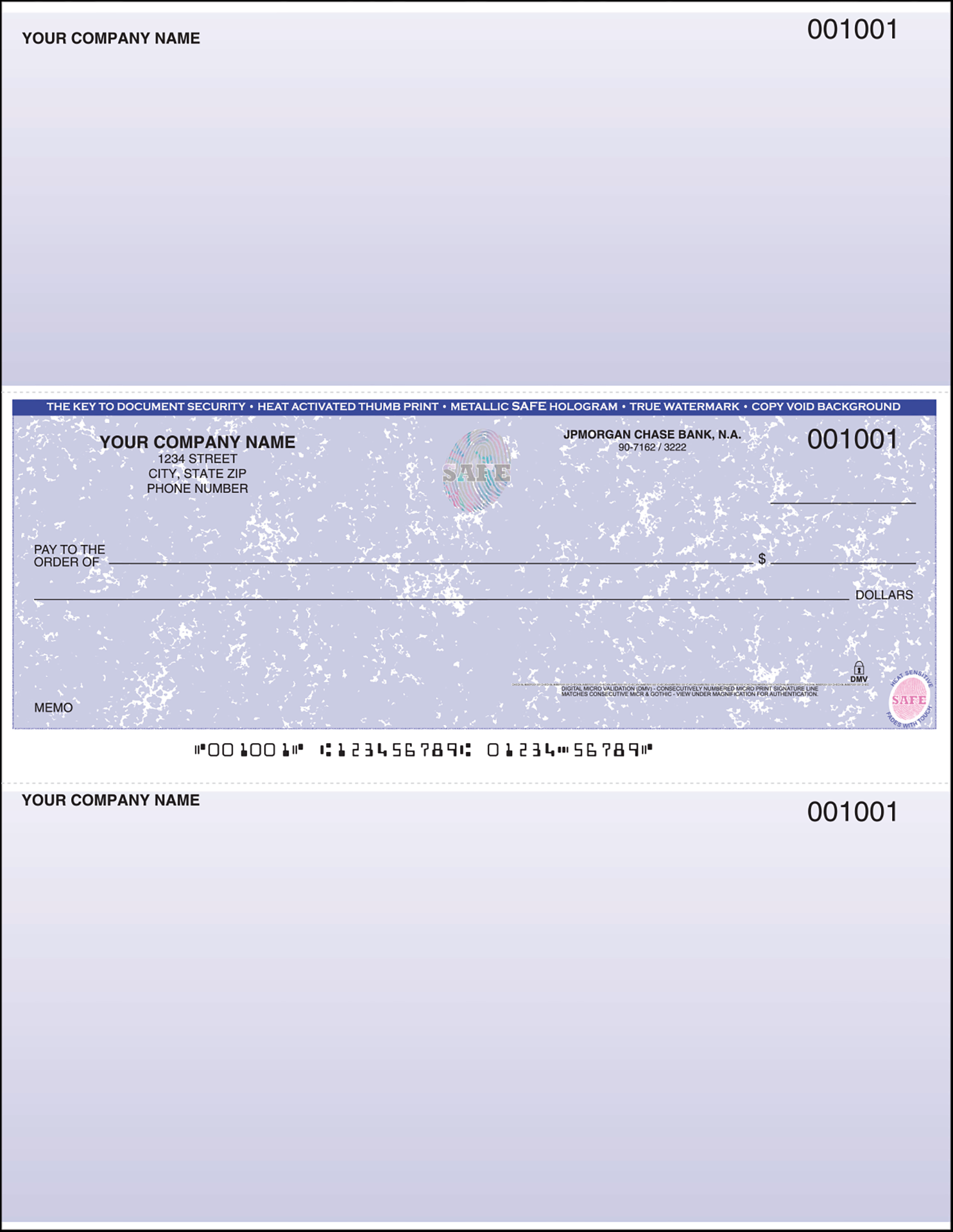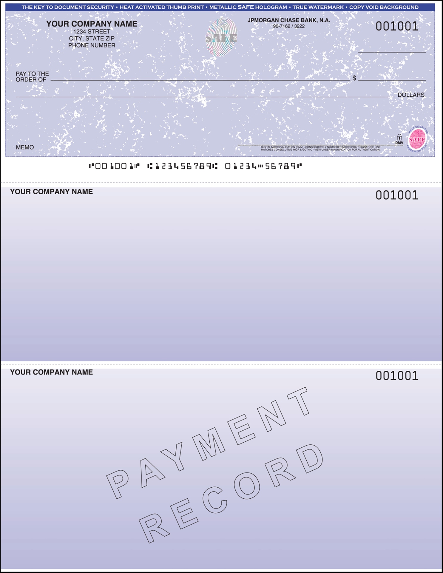Our Highest Security Hologram Imprinted checks come in three positions six colors and a Marble Void Pantograph